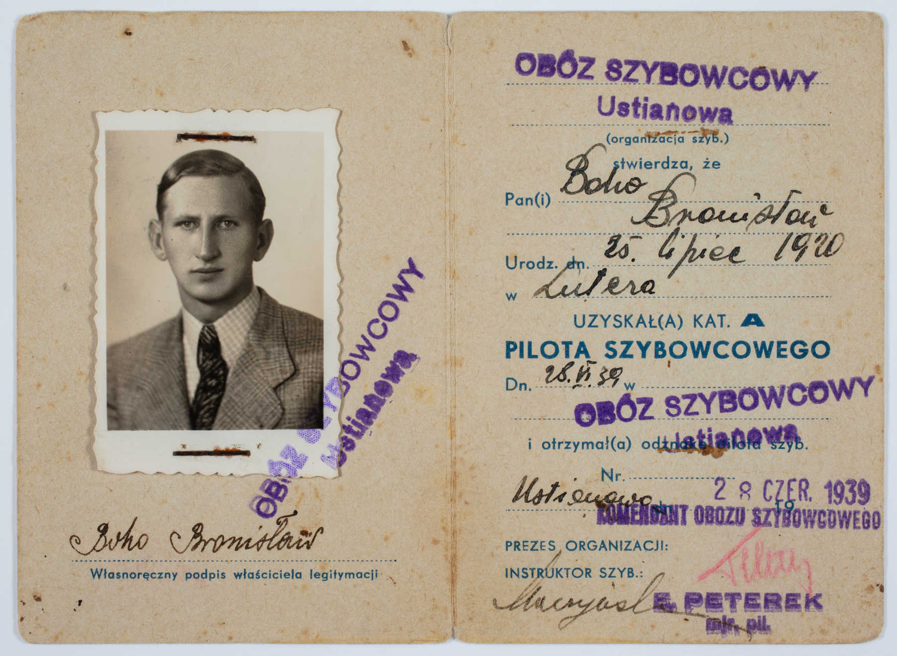 Otrzymawszy świadectwo dojrzałości w 1939 r. Bronek powziął zamiar wstąpienia do szkoły podchorążych polskiego wojska lotniczego. Naprzód odbył trzymiesięczny kurs samochodowy z wynikiem bardzo dobrym, następnie na badaniach lekarskich w Warszawie został uznany jako zdolny do polskiego wojska lotniczego. W lipcu 1939 r. odbył kurs szybowcowy w Ustianowej, a w sierpniu 1939 r. kurs motorowy lotniczy w Stanisławowie. Przygotowywał się do szkoły pilotów.