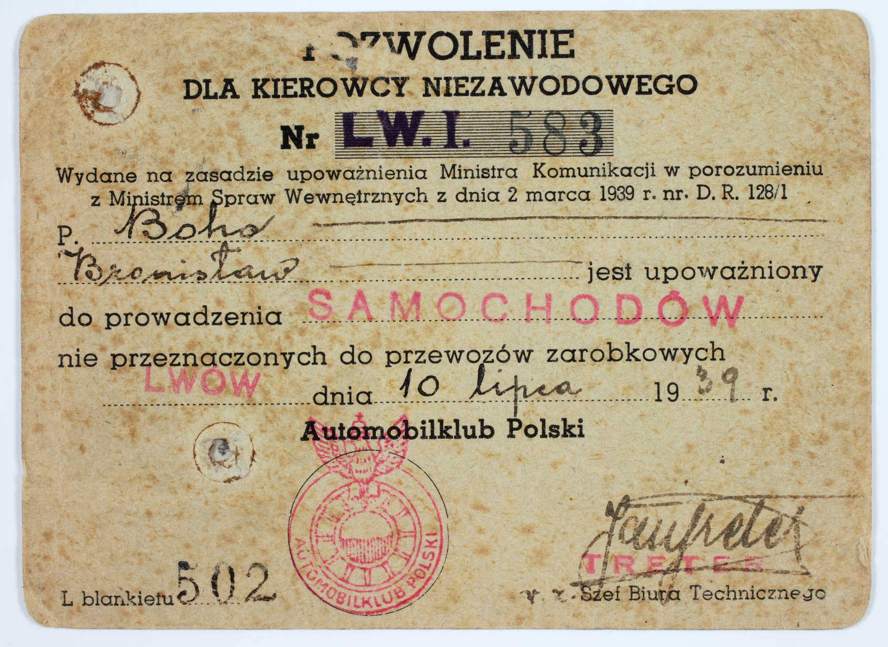 Tymczasem wybuchła wojna. 1 września 1939 r. Bronek jako prawie już żołnierz wybrał się rowerem do Lwowa, aby tam zameldować się w Ośrodku Polskiego Wojska Lotniczego. Gdy jednak dostał się do Lwowa, były tam już radzieckie wojska. Po wielu niemiłych przygodach uniknął wywiezienia za granicę i wrócił do domu.